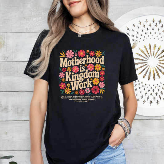 Motherhood is Kingdom Work with Bible Verse Tee